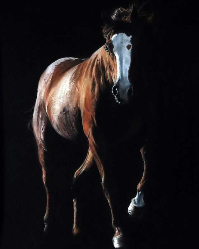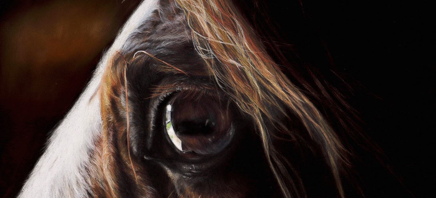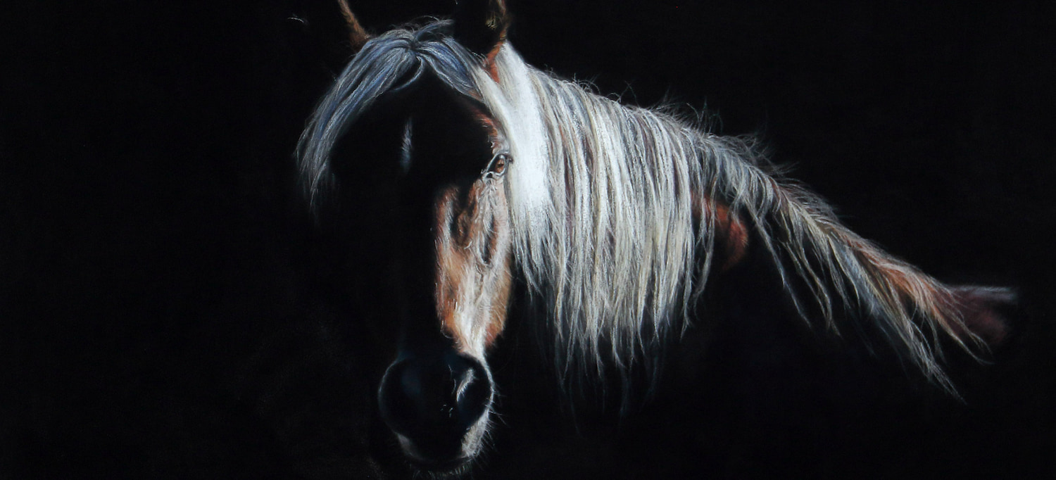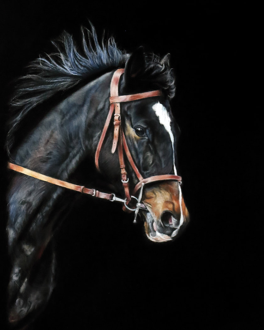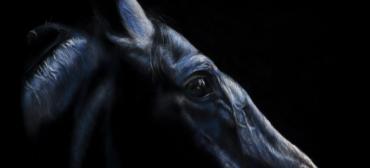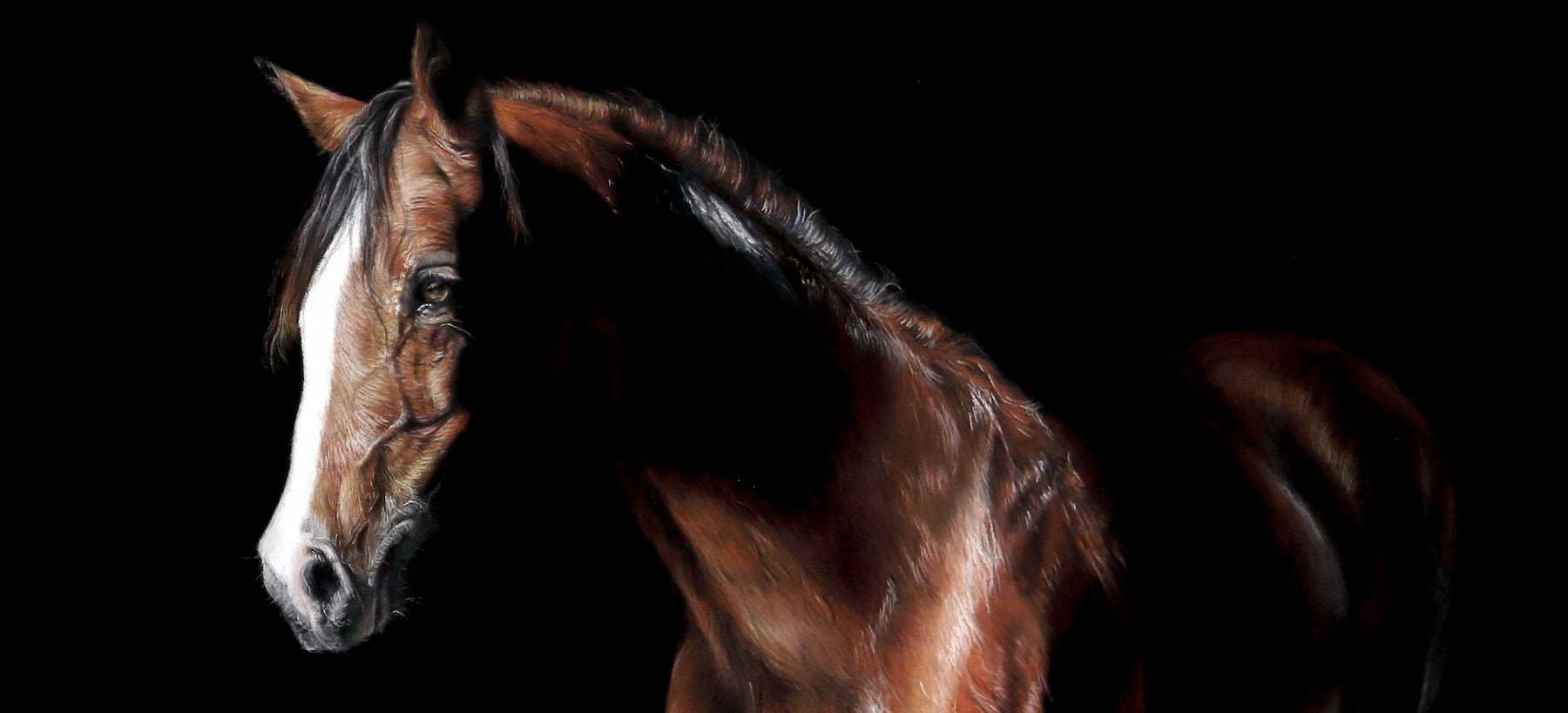 Le pastel sec, par sa richesse pigmentée et son velouté, permet de rendre le soyeux d'une robe et la profondeur d'un regard. Le crayon pastel rehausse en finesse le détail du poil et des crins, pour un portrait cherchant toujours à rendre la personnalité du modèle. Au-delà de l'image, c'est l'émotion qu'il m'inspire que je cherche à partager.